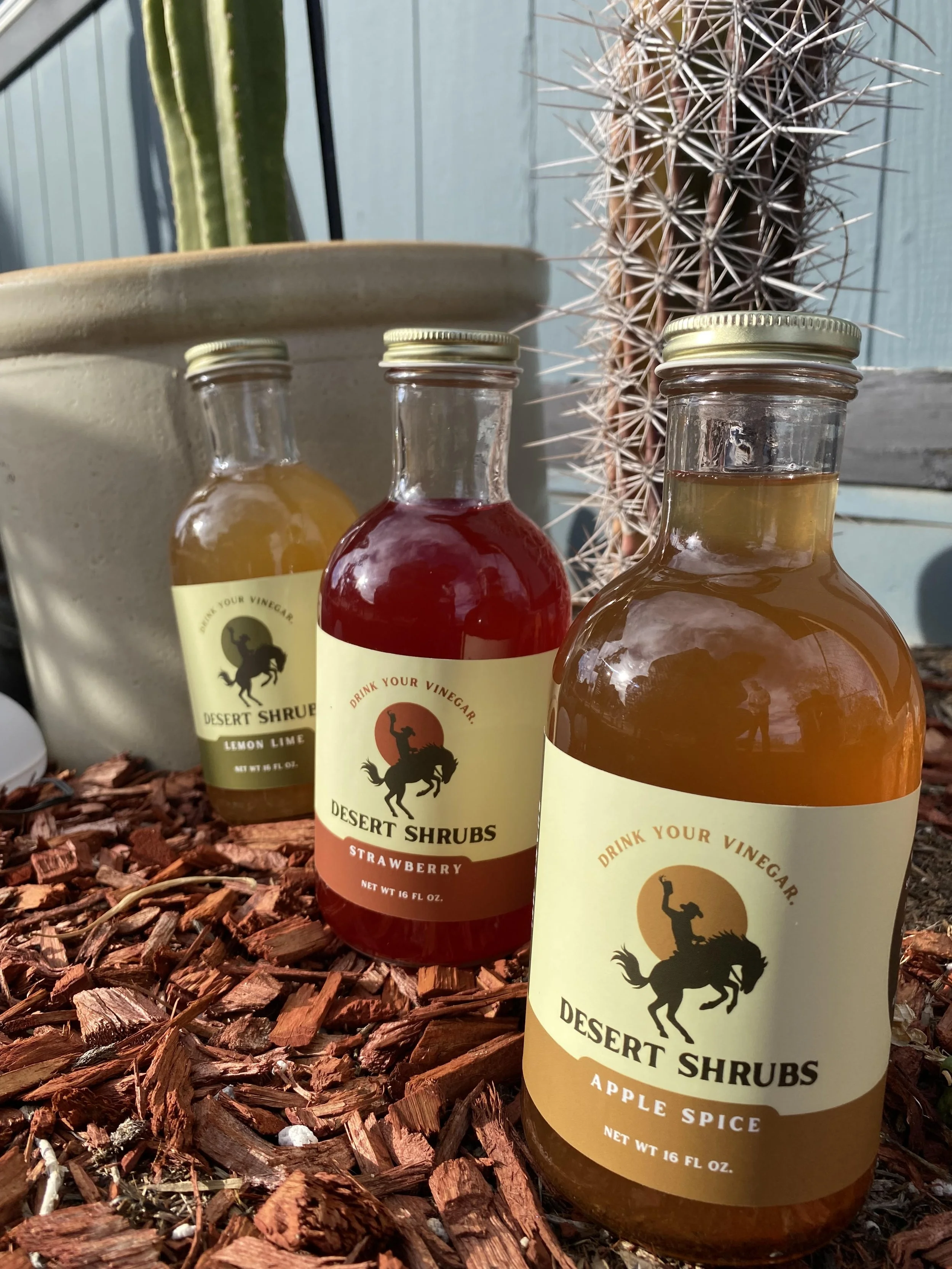 Both of us are avid home-cooks, and after years of sharing our homemade pickles, vinegars, and shrubs with our friends and family, we decided to give it a go of selling some of our creations. After a few experiments, we landed on something we’re truly proud of: Desert Shrubs.